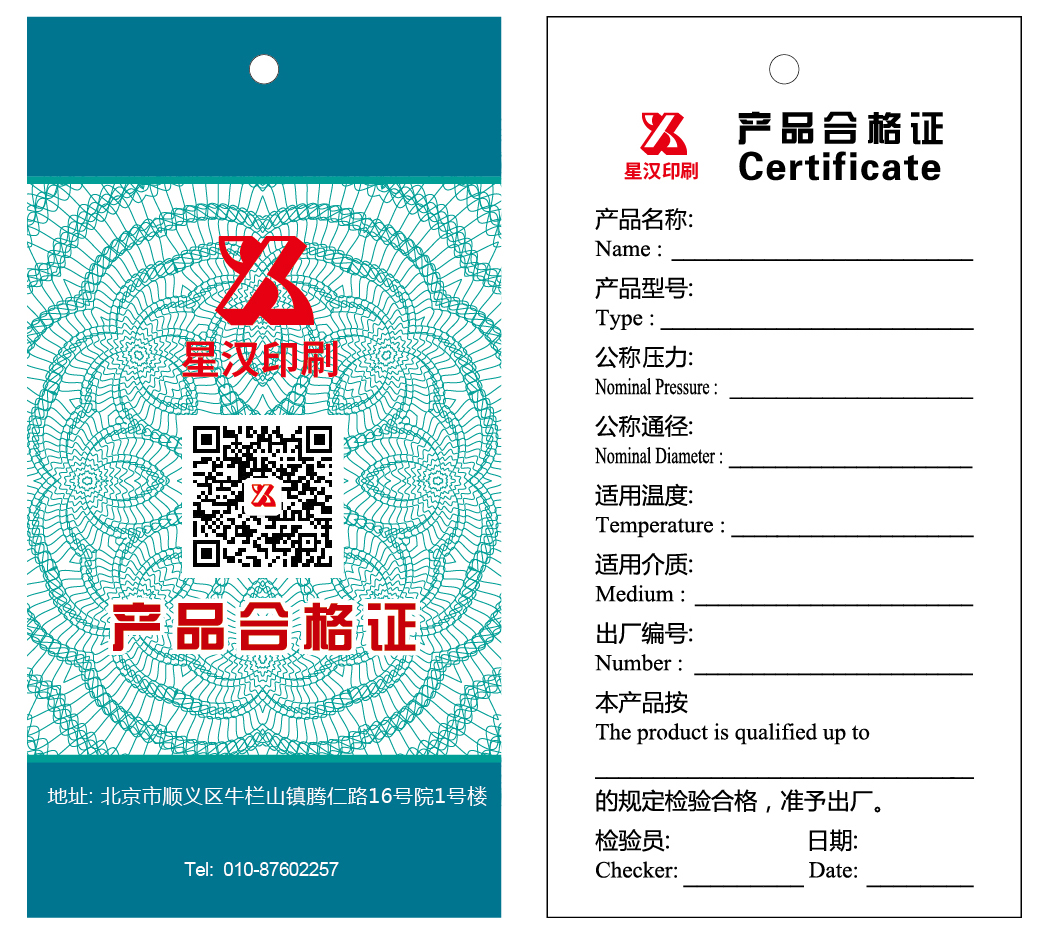 (2)從紙的類型來講,防偽合格證有以下幾種:不干膠紙,銅版紙,特種紙、纖維紙,安全線紙,水印紙,易碎紙,雙層不干膠紙,薄膜材料PET材料。